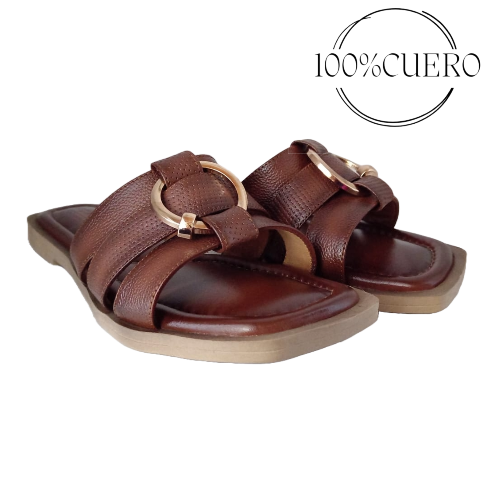 Slaps código:3508 sandalia color: caramelo descripción: taco x0 goma forro interior y plantilla interior badana forro exterior cuero adornado con aro de metal